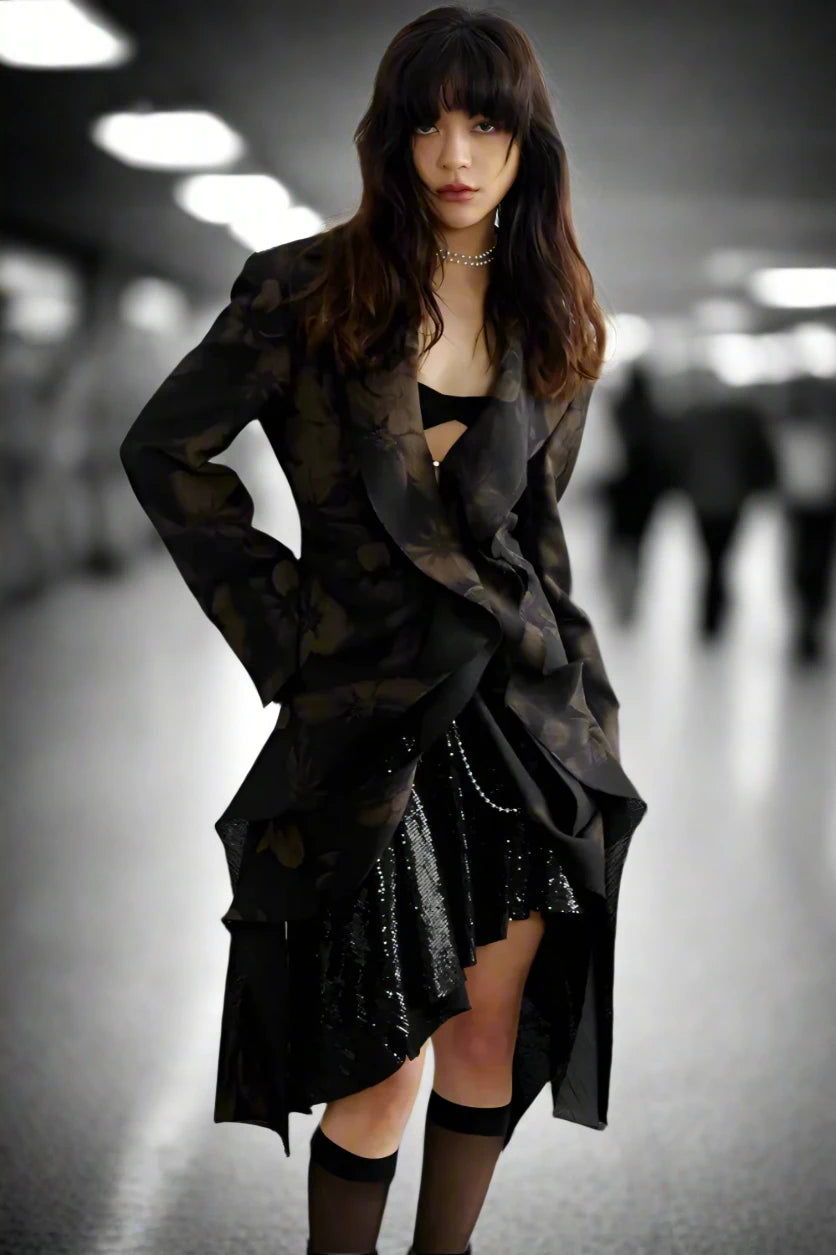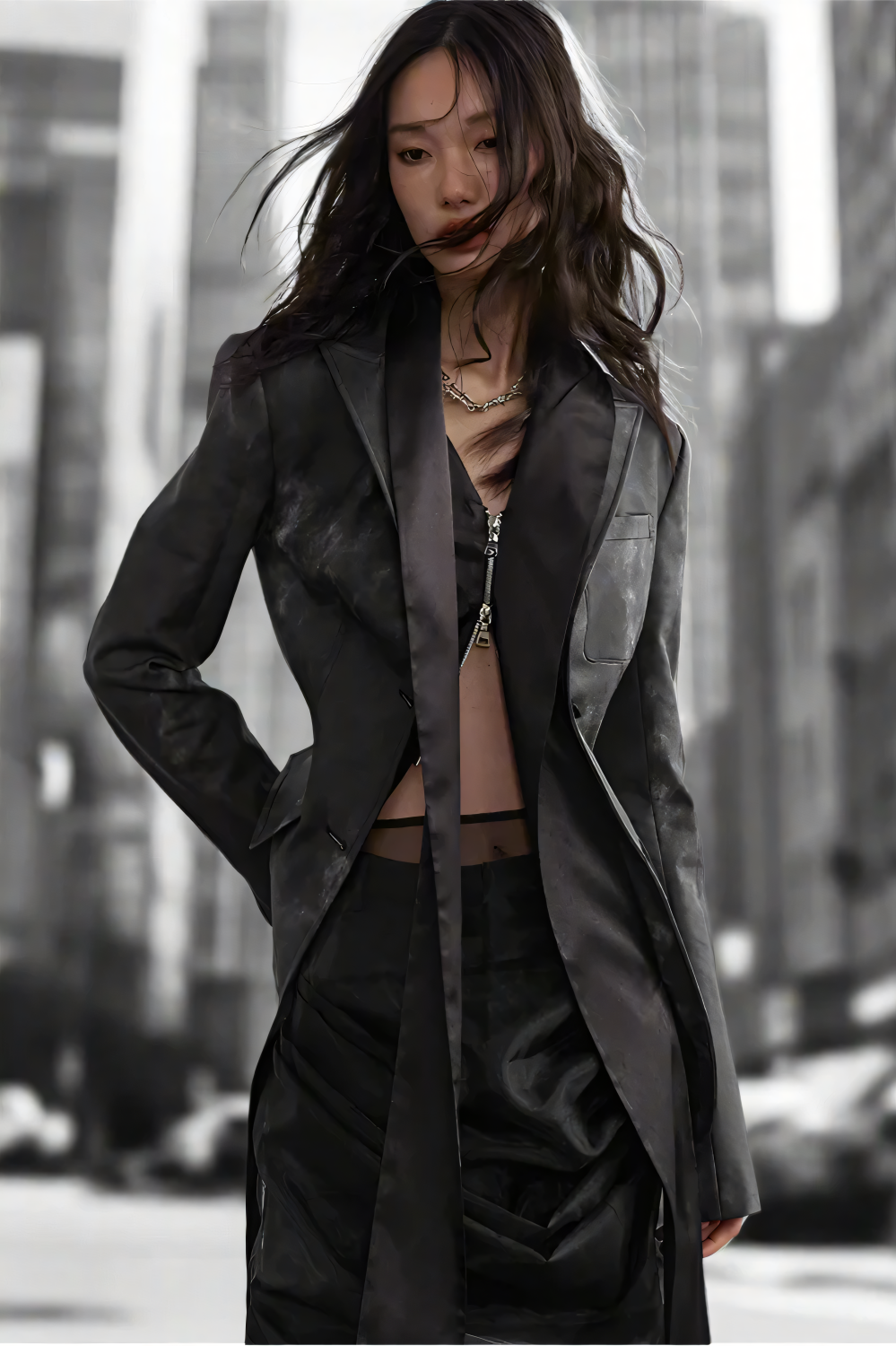 Fashion model Woolmay Mayden takes LAZERorange to the streets of New York, showcasing our trench coat, jumper, jeans, and bold accessories. His unique styling captures the essence of Cyberpunk-inspired fashion blended with urban sophistication, proving that individuality is always in style.